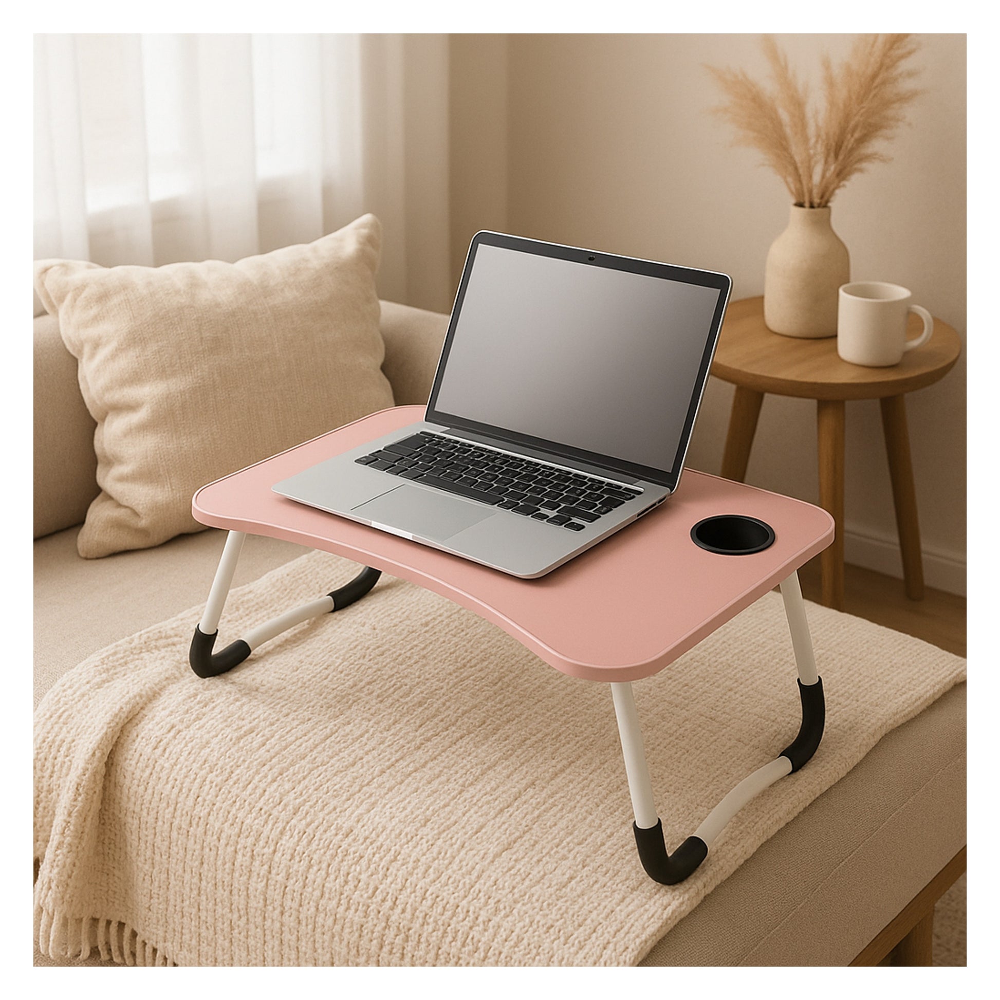 Kompaktan, lagan i praktičan prenosivi sto za rad, učenje ili doručak u krevetu. Gornja ploča sa nežno zaobljenim ivicama, integrisani slot za tablet/telefon i držač čaše – sve što ti treba na dohvat ruke. Metalne sklopive noge sa zaštitnim kapicama čuvaju pod i sprečavaju klizanje.