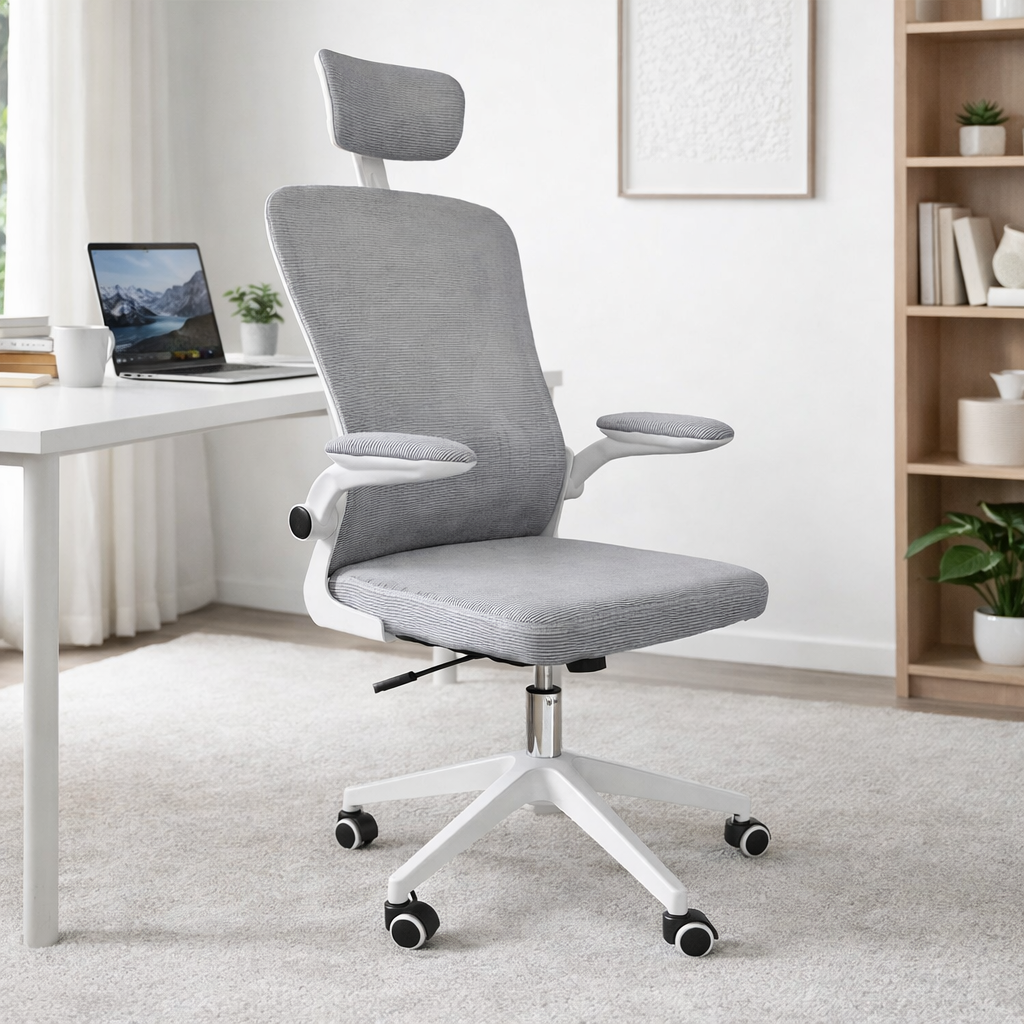 Ergonomski oblikovan visoki naslon za leđa pruža stabilnu potporu kičmi, dok je naslon za glavu podesiv po visini i po dubini, omogućavajući precizno prilagođavanje vratu i glavi svakog korisnika. Ovakva funkcionalnost značajno smanjuje naprezanje vrata i ramena tokom dugotrajnog rada.