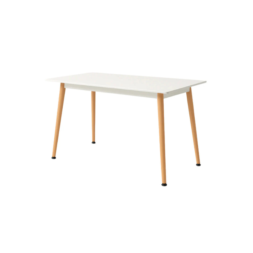Trpezarijski sto Kube je minimalistički pravougaoni sto, skadinavskog dizajna sa belom pločom, metalnom podkonstrukcijom i drvenim nogama. Čist dizajn, stabilna konstrukcija, veoma lako se uklapa u svaki enterijer.